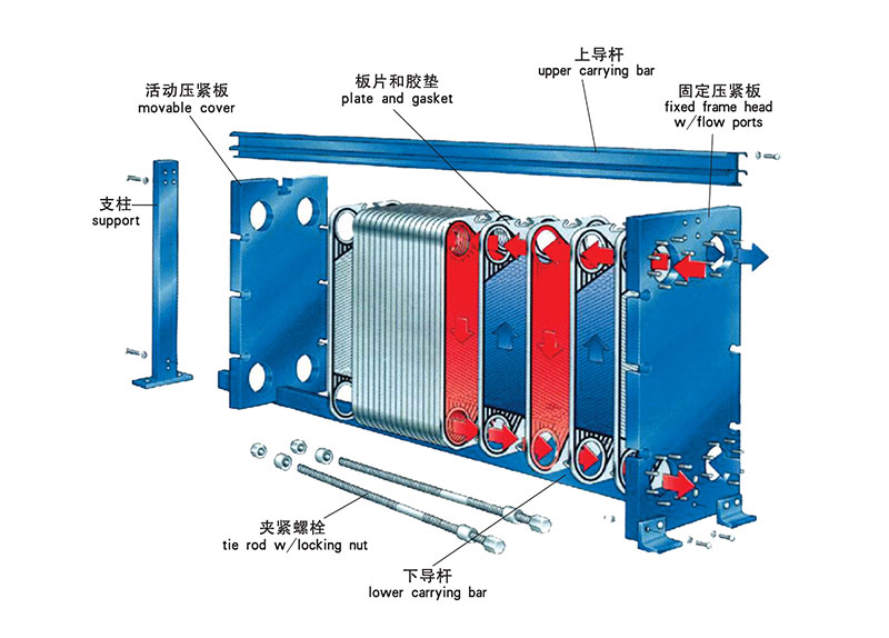 一、產(chǎn)品概述板式換熱器廣泛應(yīng)用于供熱取暖、熱水洗浴、空調(diào)、液壓油冷卻、石油化工、制藥、食品加工等領(lǐng)域。板式換熱器是目前各類換熱器當(dāng)中換熱效率很高的一種換熱器,它占用空間小,安裝拆卸方便。板式換熱器的結(jié)構(gòu)分解如圖1,主要部件是由換熱板片、密封膠墊、夾緊板、導(dǎo)桿、夾緊螺栓組成。換熱板片是由不銹鋼板壓制成型,它上面開(kāi)有4個(gè)流道孔,中部壓成人字形波紋,四周壓有密封槽。密封槽內(nèi)粘有密封膠墊。換熱板片通過(guò)兩...